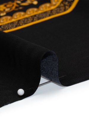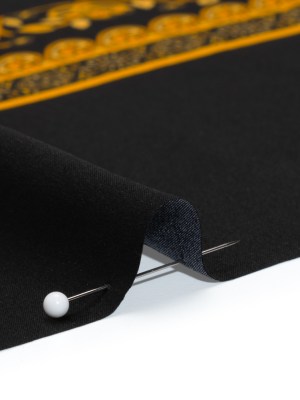 Silk Charmeuse Panel Print – Black, Brown and Gold Ornate Florals – Made in Italy