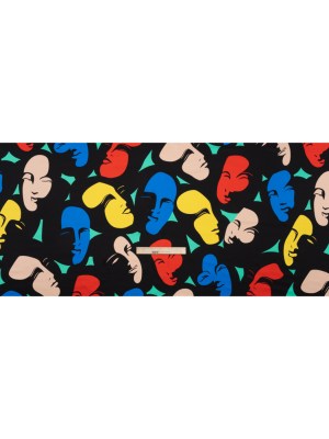 Silk Charmeuse Print – Black, Beige, and Primary Color Faces – Made in Italy