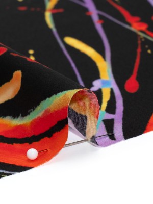 Silk Charmeuse Print – Black and Rainbow Paint Streaks and Splatters – Made in Italy