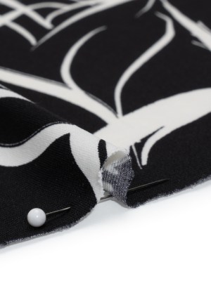 Stretch Polyester Tricot – Black and White Flowers and Leaves – Designer Deadstock