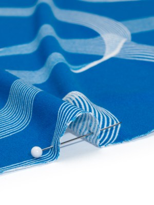 Stretch Polyester Tricot – Bright Blue and White Looping Lines – Designer Deadstock