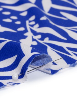 Stretch Polyester Tricot – Cobalt Blue and Off White Leafy Stems – Designer Deadstock