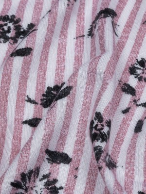 Mauve, White and Black Candy Stripes and Florals Stretch Rayon Jersey