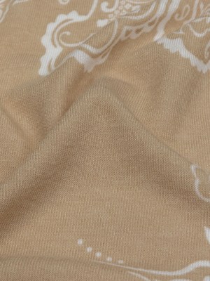Beige and White Fancy Paisley Polyester and Rayon Jersey