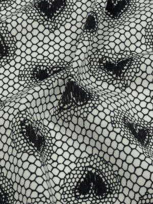 Italian White and Black Lace Hearts Stretch Nylon Jersey