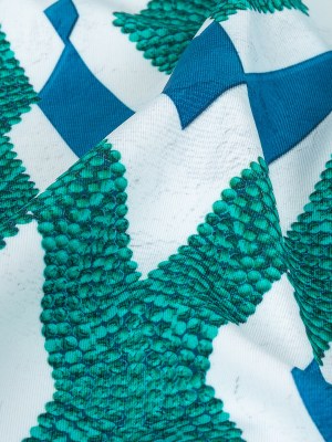 Compression Swimwear Tricot, UV Protective with Aloe Vera Microcapsules – Blue and Teal Geometric – Caye Collection