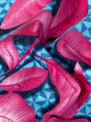 Compression Swimwear Tricot, UV Protective with Aloe Vera Microcapsules – Pink Leaves and Blue Geometric – Caye Collection