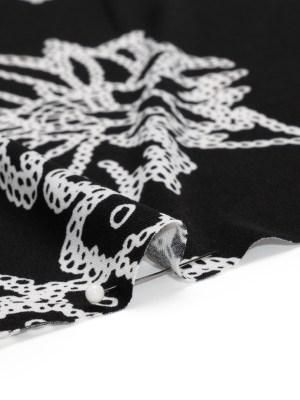 Stretch Polyester Tricot – Black and White Chain Stitch Flowers – Designer Deadstock