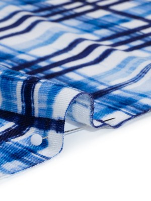 Stretch Rayon Jersey Print – Navy, Blue and White Painterly Plaid – Deadstock