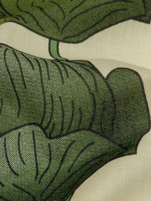 Beige, Green and Plum Big Poppies Cotton Lawn