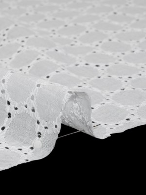 Embroidered Eyelet Cotton Voile – White Ovals in Diamonds – Naomi Collection
