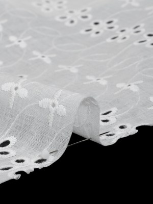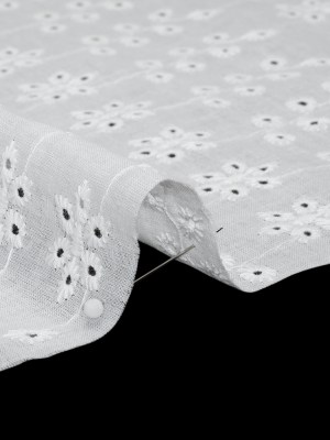 Embroidered Eyelet Cotton Voile – White Field of Flowers – Naomi Collection