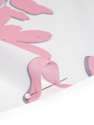 Polyester Chiffon – Blush Pink and White Flowers and Leaves – Designer Deadstock