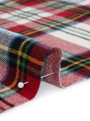 Yarn-Dyed Lightweight Cotton Twill Flannel – White, Red and Green Plaid – Deadstock