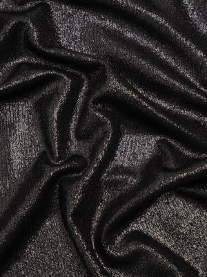 Metallic Foiled Uneven Stretch Rib Knit – Charcoal on Black – Estelle Collection