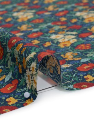 Liberty Fabrics Tana Lawn® – Florence May Dark Blue – Blue, Red and Yellow Wildflower Field