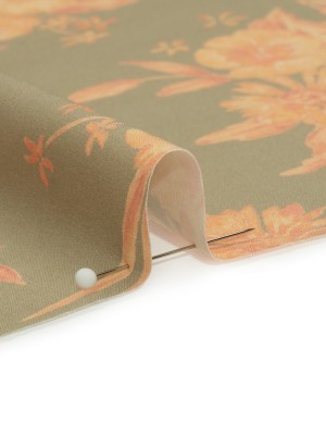 Multicolor Floral Printed Beige Cotton and Viscose Poplin