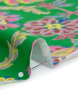 Stretch Organic Cotton Jersey – Kelly Green, Ultramarine Blue, and Hot Pink Jacobean Floral – Deadstock