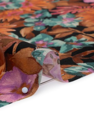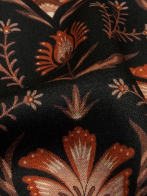 Rayon Challis – Black and Orange Floral – Watching the Fire Print – Mood Exclusive Rockland Collection