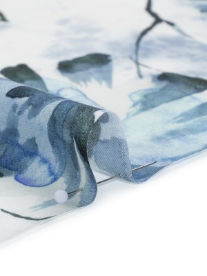 Rayon Challis – Dark Blue and Hunter Green Watercolor Leaves – Mood Exclusive Whispering Waterfall Print