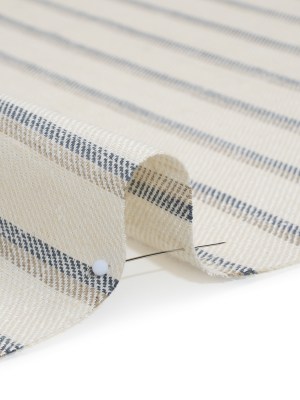 Heavy Linen Twill – Cream, Beige and Steel Blue Shadow Stripes