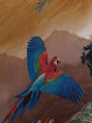 Organic Viscose Batiste – Brown and Yellow Tropical Border Print