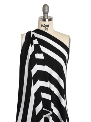 Stretch Polyester 2×2 Rib Knit – Black and White Stripes – Deadstock