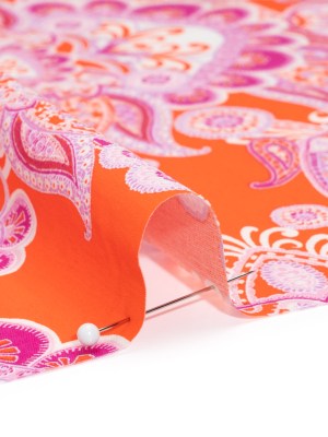 Stretch Cotton and Polyester Poplin Print – Red Orange, Magenta and White Jacobean Floral – Designer Deadstock