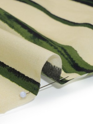 Rayon Challis – Cream and Green Painted Stripes – Verdant Trail Print – Mood Exclusive Acadia Collection