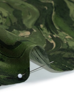 Cotton Voile – Green and Beige Abstract Swirls – Painter’s Pond Print – Mood Exclusive Acadia Collection