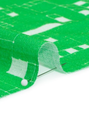 Slubbed Gauzy Cotton Woven Print – Kelly Green Geometric Squares – Mood Exclusive Blocked In