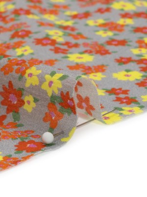 Crinkled Cotton Gauzy Woven Print – Red, Yellow and Gray Floral – Mood Exclusive Little Lillies