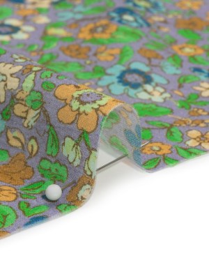 Crinkled Cotton Gauzy Woven Print – Lilac and Green Floral – Mood Exclusive Floral Farewell