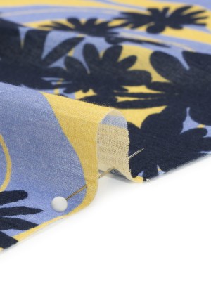 Crinkled Cotton Gauzy Woven Print – Blue and Yellow Swirls and Florals – Mood Exclusive Daydreams and Daisies