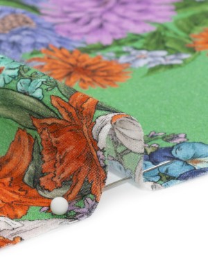 Crinkled Cotton Gauzy Woven Print – Green and Red Floral – Mood Exclusive The View Above