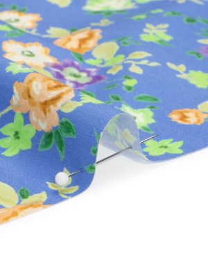 Crinkled Cotton Gauzy Woven Print – Lemon, Lime and Purple Floral – Mood Exclusive Bed of Begonias