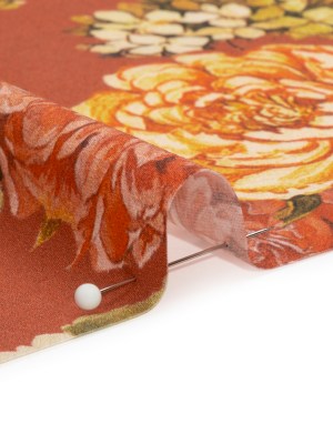 Crinkled Cotton Gauzy Woven Print – Rust and Pale Orange Floral – Mood Exclusive Floral Farewell