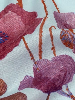 Magenta, Purple and Gray Green Big Poppies Cotton Lawn