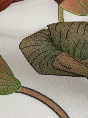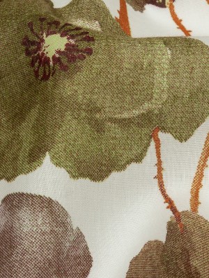 Beige, Green and Plum Big Poppies Cotton Lawn