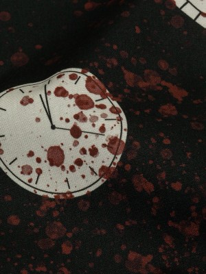Rayon Batiste – Clocks and Blood Splatter – The Masque Print – Mood Exclusive Nevermore Collection