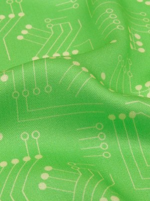 Rayon Challis – Green Circuit Board Dots – Circuit Breaker Print – Mood Exclusive Citrus Collection