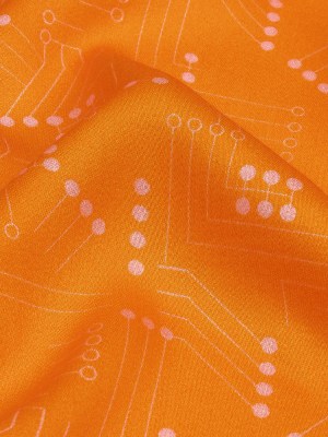 Rayon Challis – Orange Circuit Board Dots – Circuit Breaker Print – Mood Exclusive Citrus Collection