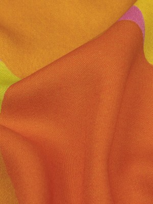 Rayon Challis – Orange and Pink Dot Lines – Spot of Sunshine Print – Mood Exclusive Citrus Collection