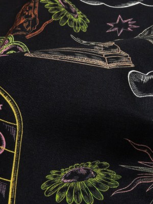 Cotton Voile – Black Trees and Windows – Summer Nights Print – Mood Exclusive Citrus Collection