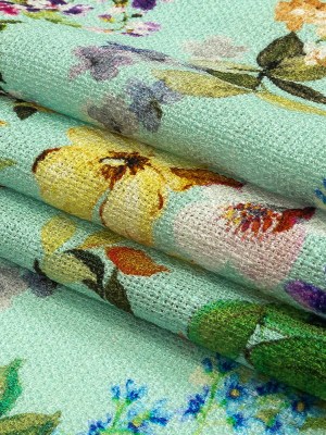 Viscose and Linen Twill Panel – Green Leopard and Floral Square – Mood Exclusive House Cat