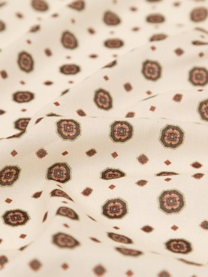 Cotton Voile – White and Brown Medallions – Gemstone Carnations Print – Mood Exclusive St. Tropez Collection
