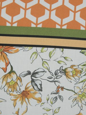 Cotton Poplin – Green and Orange Floral Squares and Geometrics – Italian Wedding Print – Mood Exclusive Avenable Collection