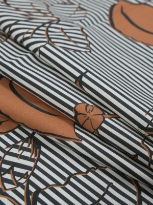 Cotton Poplin – Flowers over Gray Stripes – Flores de Vitalidad Print – Mood Exclusive Avenable Collection