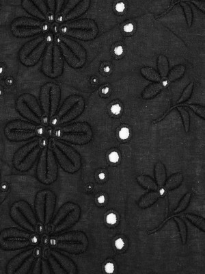 Famous NYC Designer Black Bordered Embroidered Cotton Eyelet