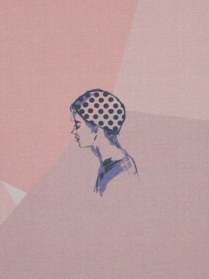 Cotton Poplin – Pink and Blue Faces on Geometrics – Les Femmes en Pois Print – Mood Exclusive Avenable Collection